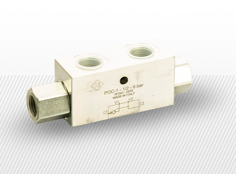 Ventil GUMEC POC-1 je jednoducho ovládaný spätný ventil, určený predovšetkým na bezpečné držanie jedného hydraulického valca a jeho riadené uvoľnenie. Pôsobením tlaku z ovládacieho kanála sa ventil otvorí, čo umožňuje kontrolované spúšťanie záťaže valca.