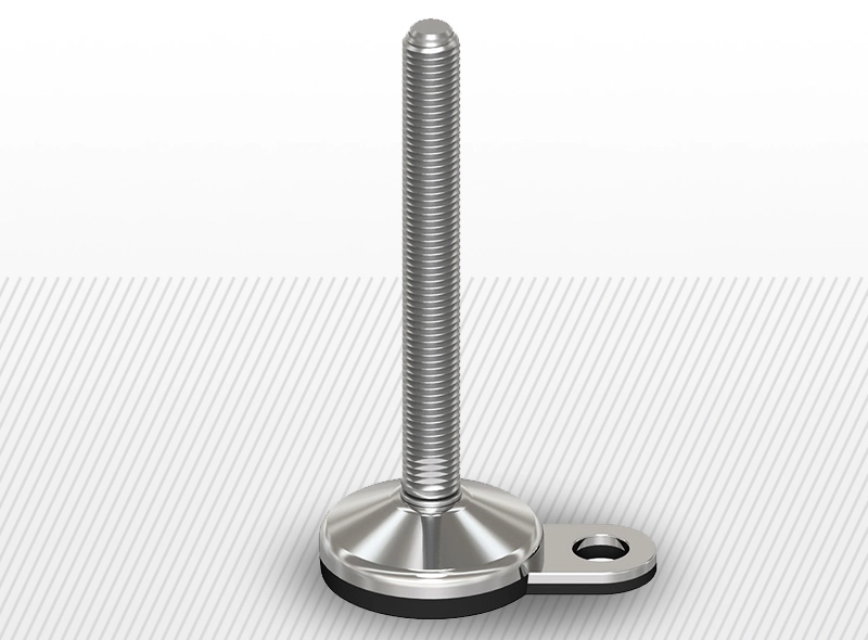 Vibropolírované AISI 304, hygienické prevedenie (ohnutá podložka medzi pätou a skrutkovým spojom), nerezová oceľ, pätky strojov upevniteľné na podlahu s vulkanizovanou NBR 80 shore gumou protišmykovou.