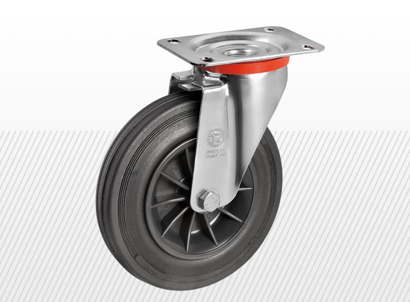 Séria 52 predstavuje univerzálne koleso z plnej gumy s tvrdosťou 80 Shore. Koleso má vstrekovaný plastový disk a je vybavené klzným alebo guľôčkovým ložiskom.
