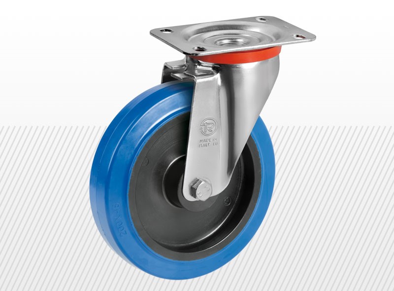 Koleso s polyuretánovým behúňom a nábojom "Thermoplastic", s klzným, ihlovým resp. nerezovým ihlovým ložiskom. Behúň (80 +/-4 Shore) má výborný valivý odpor, veľkú pružnosť, vysokú oderuvzdornosť a pevnosť v ťahu. Lisované vidlice môžu byť vyrábané z pozinkovanej (NL) a nerezovej ocele (NLX).