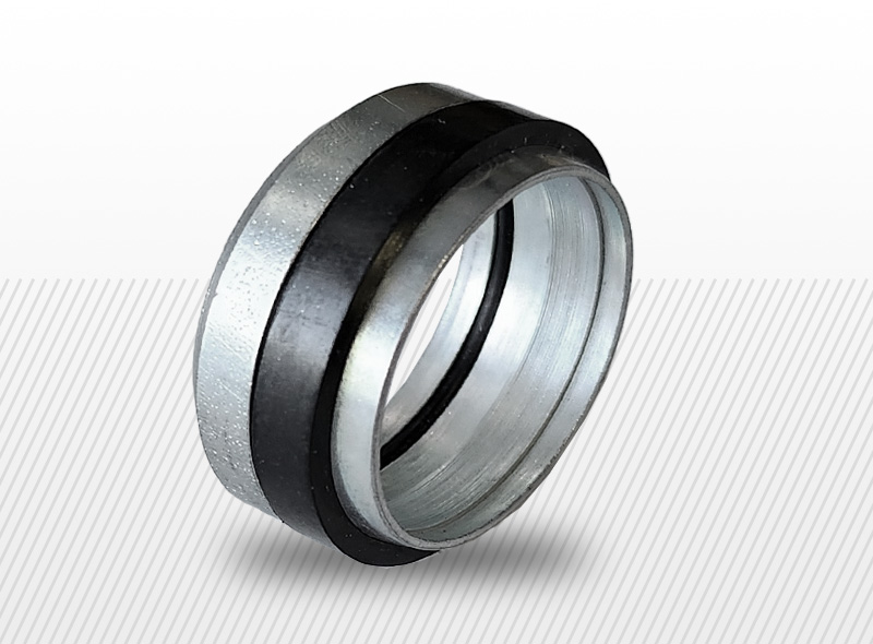 Materiál: galvanizovaná oceľ s gumou NBR, dostupná aj v nerezovom vyhotovení, so zeleným tesnením Viton.